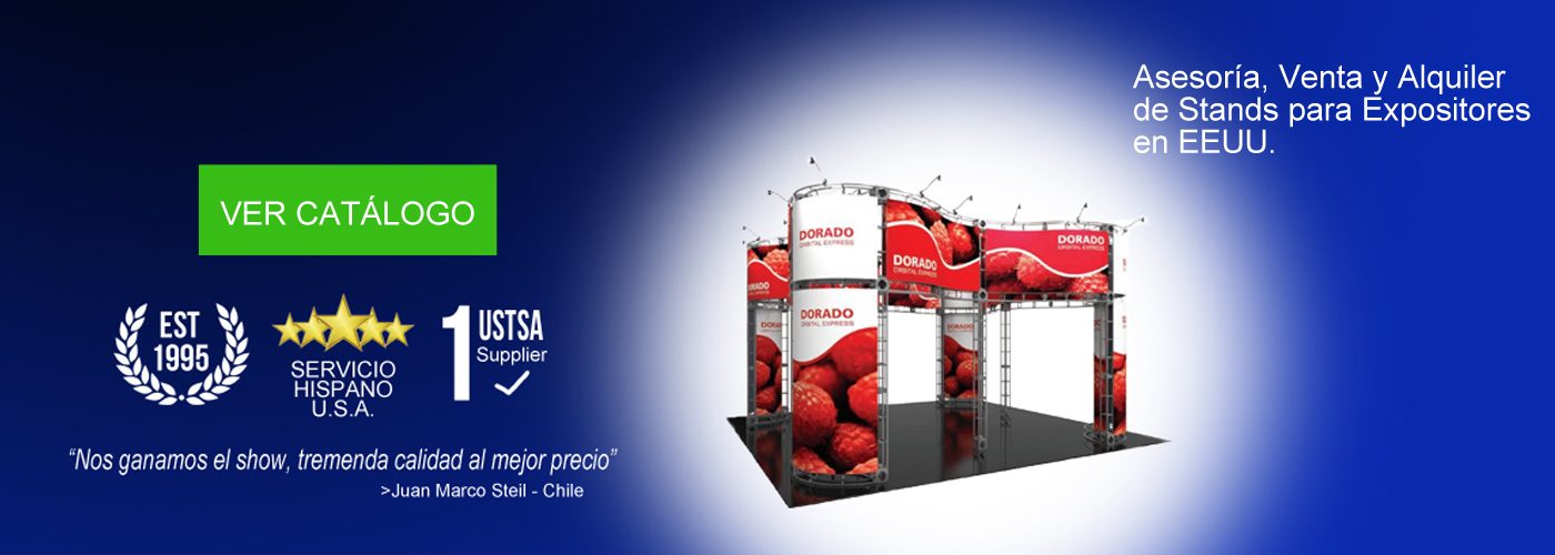 Exhibition Display, LLC es la empresa líder en ventas de Stands para Ferias en Estados Unidos. Basados en Chicago, ILL , Las Vegas, NV y Doral, FL nuestra empresa nació al servicio de expos en ferias en 1995. Somos una empresa familiar y llevamos más de 20 años en la industria de Exhibición portátil y custom, lo que nos proporciona el conocimiento suficiente para asesorarlo sobre lo que funciona y lo que no funciona.